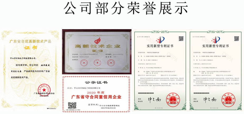 中山市百納電子科技有限公司成立于2009年,位于廣東省中山市火炬高技術(shù)產(chǎn)業(yè)開(kāi)發(fā)區(qū),集研發(fā)、生產(chǎn)、銷(xiāo)售于一體,主要產(chǎn)品有:高頻變壓器、各類(lèi)電感、磁珠、電源適配器等,廣泛應(yīng)用于大功率醫(yī)療設(shè)備、工業(yè)電源、UPS、充電機(jī)、汽車(chē)充電樁、智能家居、通訊設(shè)備、音響、LED等領(lǐng)域。